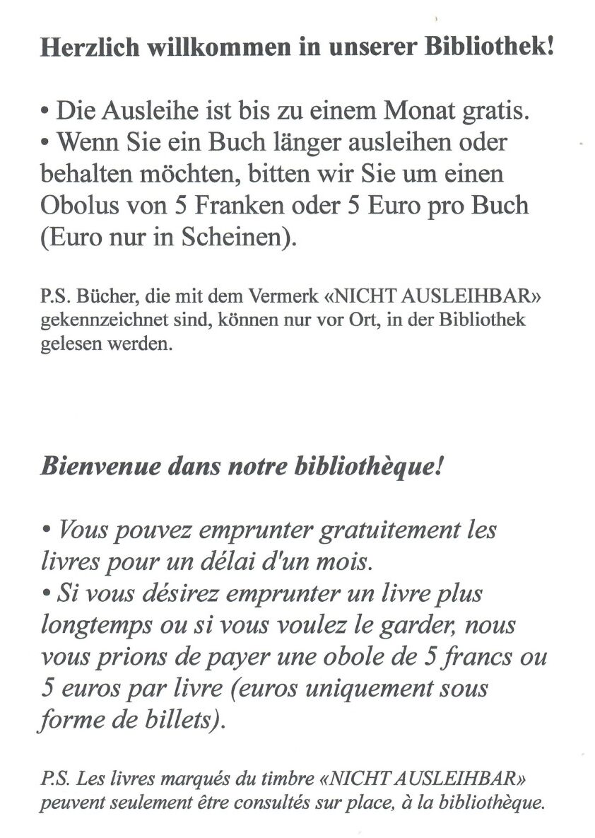 … aus der Gästebibliothek ein Buch ausleihen möchten, welches Ihnen während Ihres Aufenthalts in Leukerbad zur Entspannung oder Besinnung dient.
